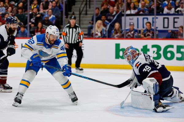 Colorado appeared to strike first when Ross Colton knocked a puck out of midair and into the net early in the first period. The goal was disallowed after St. Louis successfully challenged the play was offside.